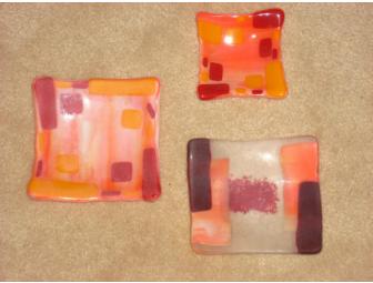 A one of kind Trio of fused glass plates handcrafted by Sara Range, DCHS Junior.