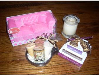 Enjoy relaxation in your home with all the essentials, candles, notepad, jewelry box and $25 Gift Certificate to Salone Bella & Boutique