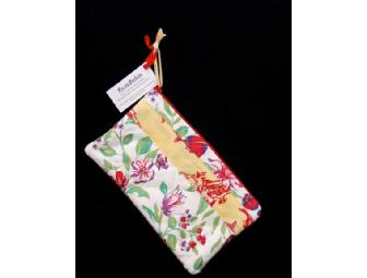 A one of a kind zippered bag handmade with pants and vintage fabric. Use for change, cosmetics, knitting, sewing supplies or whatever your heart desires!