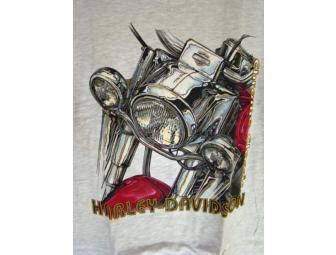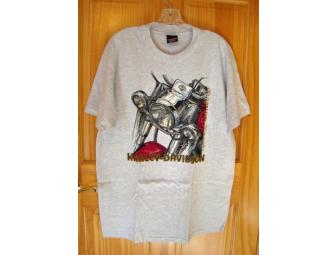 This Harley-Davidson Hanes Beefy-T gray t-shirt features a classic motorcycle design and the words "Harley-Davidson Chrome Classic."