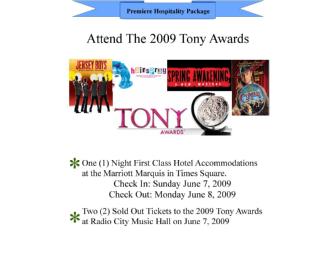 Package Details: Once in a lifetime experience will include two (2) sold out tickets to the 2009 Tony Awards on June 7th at Radio City Music Hall and two nights of hotel accommodations at the Marriott Marquis overlooking Times Square. Check in June 6th and Check out June 8th.