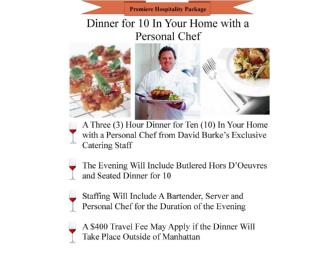 A (3) Hour Dinner for (10) in your home with a personal chef from David Burke's Exclusive Catering Staff.