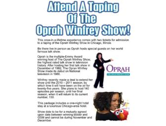 This once in a lifetime experience comes with 2 tickets to a LIVE taping of the TV's highly rated talk show host and humanitarian. Package includes a one-night stay at a luxurious hotel in Chicago.