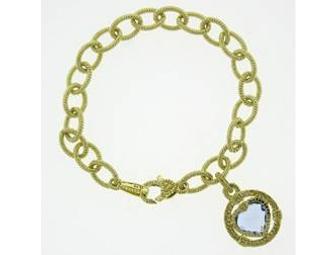 JUDITH RIPKA 18K GOLD BRACELET WITH STONE HEART CHARM 7.5" LENGTH, BLUE QUARTZ,DIAMOND WEIGHT .004