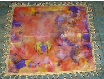 Each class painted a challah cover as the art project for the SSSM benefit this year. Painting on silk is a special experience which can produce fluid and beautiful results. These one-of-a kind creations were made by our children in a cooperative spirit. Each class had a different, limited palette of 3 to 4 colors to explore different hues and the intensity of those colors.