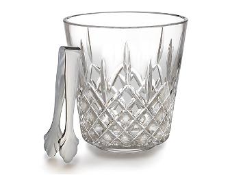 Lismore Ice Bucket with Tongs. A Waterford classic, this ice bucket from the favorite Lismore collection comes complete with a set of silver tongs. Beautiful diamond and wedge cuts embellish this sparkling, timeless bar accessory.