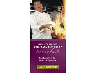 $100 gift certificate to Roy's Hawaiian Restaurant. Also included is a bottle of Stag's Leap Rancho Chimiles Sauvignon Blanc, 2007.