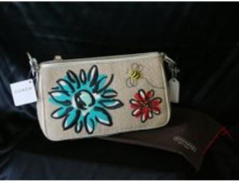 Adorable Coach clutch, with honey bee and sunflower applique -- perfect for spring and summer!