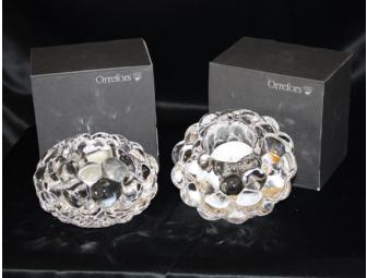 Enliven your table with this set of four (4) glorious Orrefors Hallon Raspberry votive candle holders!