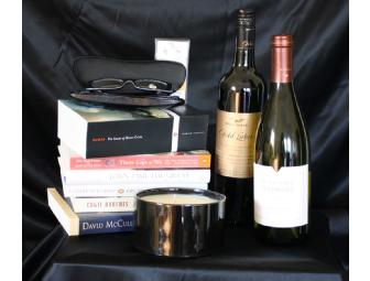 As you curl up in your favorite place with one of these books enjoy a glass of wine from one of the two bottles included.