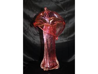 Bring spring inside and showcase your beautiful blooms in this tulip-shaped, rose-colored vase hand blown by a Laguna artist.