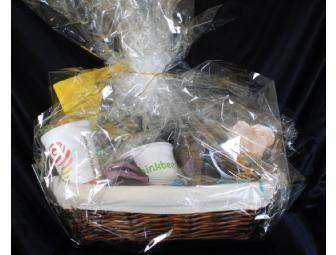 Thesophomore basket is filled with wonderful gifts for all. Gift certificates to Jamba Juice, Coffee Bean, Pinkberry, and Pacific Theatres. Also includes body mist and body lotion from Gilly Hicks, sunglasses, hair bands and much more.