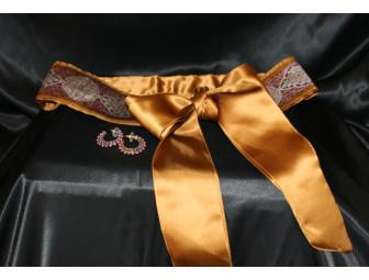Handmade, Obi-style silk belt with coordinating 14 kt. earrings.