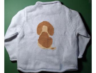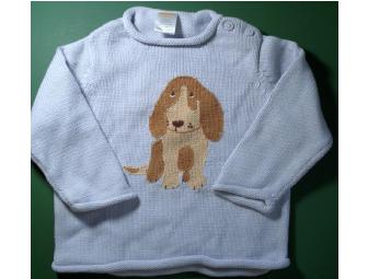 From Gymboree, a 100% cotton light blue sweater. The sweater features a basset on the front of the sweater and also on the back of the sweater!