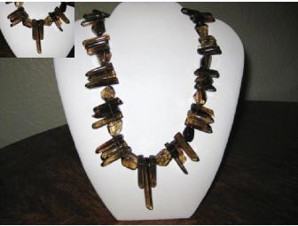 A thing of beauty and a joy forever! This unique work of handcrafted wearable art, in sultry smoky quartz, comes with a card describing the healing properties of this mystical stone, and was designed and created for this event by Sarah Dow of Gemstone Confections. This treasure can be yours for the highest bid.