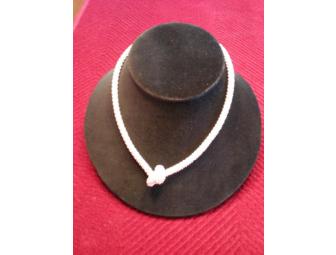 Made exclusively for the Kids In Harmony 2009 Gala by the French designer Severine Carpenter of Camelie Designs in Milton, this beautiful necklace was designed with both the musician and the concert goer in mind. It is made of 1,200 sterling silver beads, handwoven into a rope, with a finished length of seventeen inches. Perfect for the office, shopping, and all those First Monday concerts in Jordan Hall! It's that magical travel accessory that goes with absolutely everything! This is one piece of jewelry that will not be staying home quietly nestled inside a jewelry box!