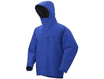 Gore-tex Paclite guaranteed to keep you dry. Pit zips, 100% seam taped attached adjustable hood. Ches t pocket with water resistant zipper.