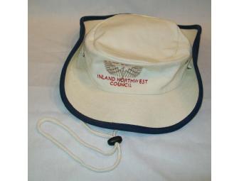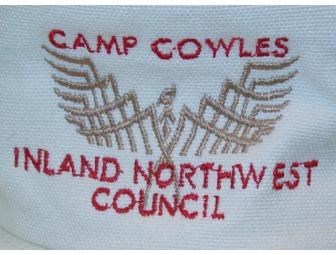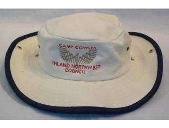 This hat has a full 2 1/2" wide brim. The sides can be folded up and snapped to stay. Camp Cowles is located outside Spokane, WA. New condition.