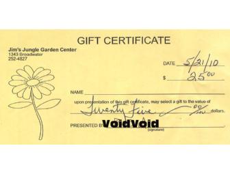 $25 Gift Certificate to Jim's Jungle, our locally owned garden store.
