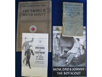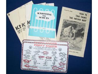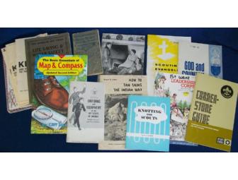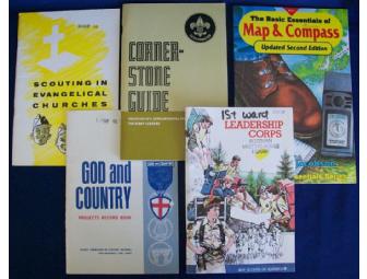 The Scouting Books include: The American Red Cross Life Saving & Water Safety, Copyright 1937; Leadership Corps, Copyright 1972; Mom, Dad & Johnny the Boy Scout, Copyright 1944; God and Country-Project Record Book, Copyright 1969; Scouting in Evangelical Churches, Copyright 1957; Cornerstone Guide- Phase One of a Developemental Program for Scout Leaders, Copyright 1972; The Basic Essentials of Map & Compass, Copyright 1997; How to Tan Skins the Indian Way, Copyright 1989; Knotting for Scouts, Copyright 1961; three-Knots and How to Tie Them, Copyright 1978; Official Uniforms and Equipment of the Boy Scouts of America- 1963; Honor Bright Boys' Handbook, Copyright 1921; A Visual Aid Knot Tying Card-featuring how to tie forty knots.