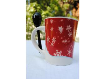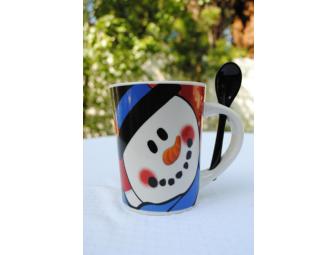 Sip your hot coca from this adorable snowman mug. It comes with a spoon that conveniently fits inside the handle.