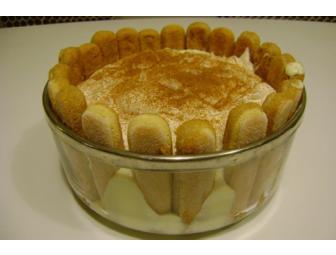 Would you like a delicious tiramisu to serve friends at your next party or family dinner? This homemade tiramisu never fails to please a crowd. Even Italians have been known to rave about it! It is a traditional tiramisu with ladyfingers, mascarpone cheese, espresso, a slight rum flavor (optional) and handmade whipped cream top with a sprinkle of cinnamon. It will be served in a gorgeous silver edged glass dish. It serves 10-12, although if you're like the people in our house, you'll wish you could have it all to yourself.