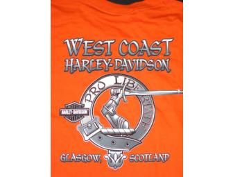 Part of the Harley-Davidson International T-shirt collection this T-shirt from West Coast Harley-Davidson, Glasgow, Scotland can be part of your collection too. Size: X-Large Color: Orange