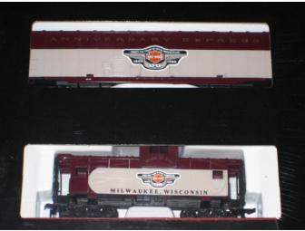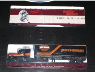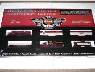 All aboard...Train collectors will want to add this Harley-Davidson 95th Anniversary Limited Edition HO model train set to their collection. The set includes a powerful diesel locomotive and five cars. Several of the train cars include the 95th Anniversary logo. This train set was limited to 9,500 sets and this set is number 9,500. The set is in its original box with the cellophane wrapping still on and has never been opened.