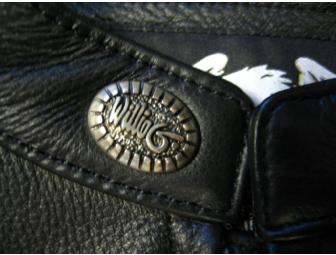 Here's your chance to own a classic women's Harley-Davidson black leather jacket. Features include a front zipper, two front zipper vents and sides, zip up sleeves, mandarin style collar and a subtle Harley-Davidson design done in black on the jacket back. Braiding down the sleeves and vest like looking back make this jacket a great addition to any woman's wardrobe. Women's size: Medium