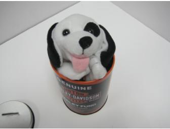 Harley-Davidson Tin Can Bank With Stuffed Dog II