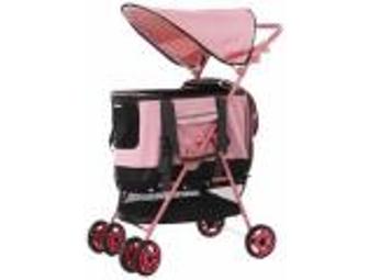 Guardian Gear All-Purpose Travelers. It's a Stroller, a Carrier, and a Car Seat in One! The Guardian Gear All-Purpose Traveler safely transports pets no matter the mode of travel. Easily converts from a stroller, to a car seat, to a pet transport in minutes without tools! Stroller features swivel front wheels and a rear wheel braking system. Lightweight tubular steel frame folds down in seconds for easy storage. Durable 600 d polyester Traveler features removable, adjustable carrying straps, backstraps for seatbelt attachment, and Velcro tabs to secure it to stroller frame. Zippered mesh top opening allows easy access while providing ample ventilation. Roll-up flap provides privacy and a safety clip attaches to your pet's collar or harness for added security. Multiple outside pockets carry all your essentials. Two Cup holders, one for you, one for your pet! Recommended for use with pets only. Easy assembly required. Stroller measures 33 in L x 17 in W x 39 in H and holds pets up to 44 lbs. Carrier measures 20 L x 11 1/2 W x 13 H.