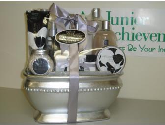 Rhapsodize frosted vanilla bath set. Includes body butter, bath salt, body lotion, cream bath, body mist, body wash scrub, hand & nail cream and soap.