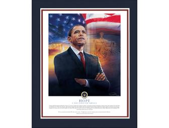 This stunning reproduction of Ray Simon’s exclusive painting features patriotic themes, a watchful Abraham Lincoln, and an unbelievable likeness of the new president. Capture this remarkable moment forever in a professional, high quality print that can be handed down for generations.