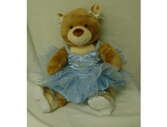 Give this fun little bear a home for the holidays! This bear is 15" and is asthma and allergy friendly. She comes with a sparkly blue dress, white bows, sliver glitter heels, and pink underwear.