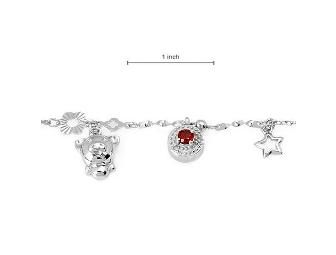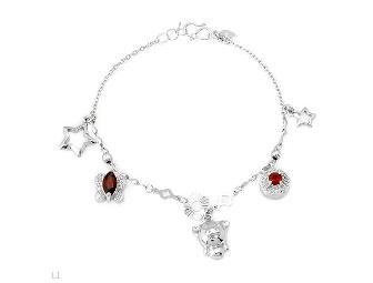Cute sterling silver bracelet with garnets 0.90 ctw, with piggy, butterfly, and star charms.
