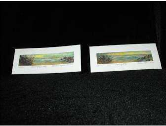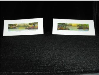 The names of these prints "River's Edge" (450/950)-9"x4"; "Sunflower Gardens" (612/950)-7"x4"; "Country Road" (380/950)-12"x4"; "Upstream" (593/950)-12"x4"; "Summer's Reflection" (384/950)-9"x4"; "Evenings Glow" (265/950)-8 1/2"x3 1/2"; "Morning's Serenity" (706/950)-8 1/2"x3 1/2"