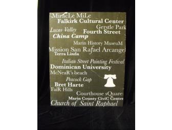 Made exclusively for the St. Raphael auction by RU Piper Designs of Sonoma. Made to look old and distressed. The City of San Rafael board has names and landmarks that are quintessential of the city we know and love! R U Piper designed posters are mounted on a piece of recycled/salvaged wood. Board comes ready to hang in your home or office.