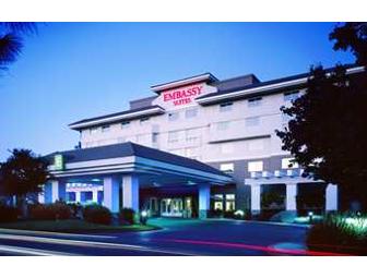Enjoy this one night stay at the Embassy Suites in San Rafael. Your stay includes a luxurious, spacious two-room suite, Manager's reception featuring your favorite beverages and a complimentary, cooked-to-order breakfast.