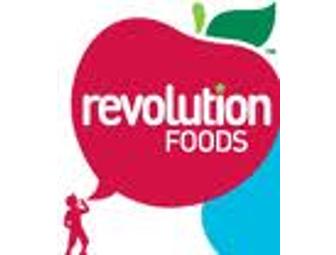 Basket full of Rev Foods branded products (i.e., "sammy-jammy's, "pop-a-longs", "mash-ups") etc. Included with this basket of yummies is one free week of lunch.