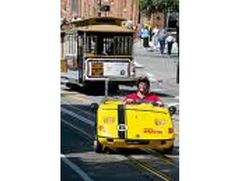 Enjoy a GPS guided tour of San Francisco with your own GoCar. Each ticket is good for two people. Drivers must be 21 years of age or older and possess a valid driver's license. Passengers age four or older are permitted to ride in the GoCar.