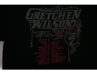 Short sleeve tee-shirt of Gretchen Wilson's 2008 Tour. Tee-shirt is new. Size L. Made of cotton. Signed by Gretchen Wilson.